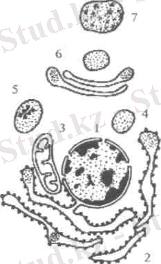 1-ядро, 2-кедір-бұдыр эвдоплазмалық тор,