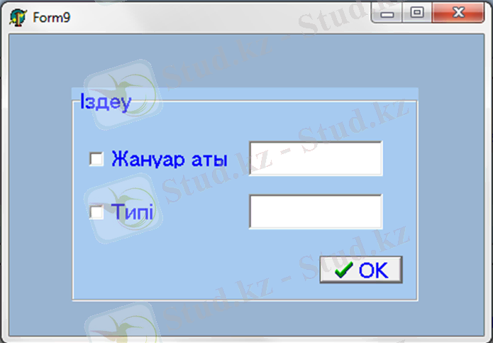 Сонымен қатар бұл жобада мәліметтерді іздеуді жүзеге асыруға болады. Іздеу «Жануар аты» және «Типі» бойынша жүзеге асырылады. Сұрыптау формасы келесідей түрде болады.