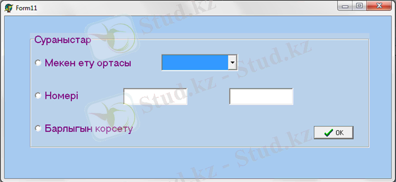 ... жалғасыСұраныстарды жүзеге асыратын форма келесідей түрде болады.