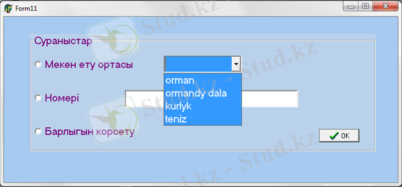 Menu-дегі «Сұрыптау» пунктін таңдаған кезде келесідей форма ашылады.