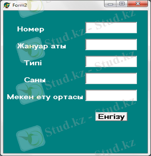Ал бағыныңқы кестеге мәлімет енгізу үшін Form1-дегі «Енгізу» батырмасын басамыз. Сол кезде келесі форма ашылады.