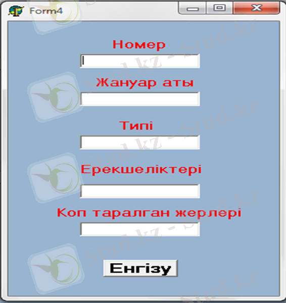 Формада көрсетілгендей жануарлар туралы мәліметтер жазамыз және «Енгізу» батырмасын шертеміз.