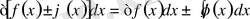 4 0 . Бірнеше функциялардың алгебралық қосындысының анықталмаған интегралы қосылғыштардан алынған анықталмаған интегралдардың алгебралық қосындысына тең, яғни
