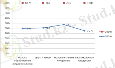 Кестедегі деректер бойынша елде 86, 8 % ірімшік және сүзбе, 73, 3 % қышқыл сүт өнімдері, 51, 9 % шетелде өндірілген май тұтынылады.