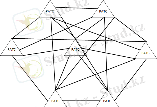 - түйінсіз аудандалған телефондық желі, жолдары «әрқайсысы әрқайсысымен» принципімен өзара жалғасқан бірнеше аудандық АТС (РАТС) құрылады (1. 2 - сурет) ;
