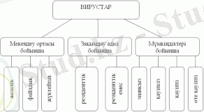 Қазіргі кезде 50 мыңнан астам вирус белгілі. Олар шартты түрде келесі белгілеріне байланысты мынадай топтарға бөлінеді (сурет 1) :