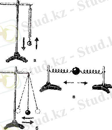 Суретте Жер көрсетілмеген. Жер, тіреу және жеңіл мықты жіпке ілінген шар тербелмелі жүйе құрады да, оны физикалық маятник не жай ғана маятник деп атайды (1, б-сурет) . Екі штатив, екі серіппе және массасы m дене тербелмелі жүйе құрады, оны әдетте горизонталь серіппелі маятник деп атайды (1, в-сурет) .