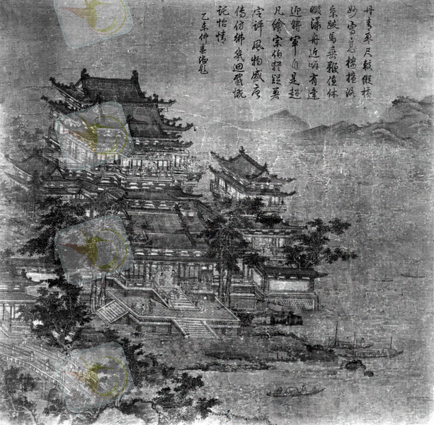"Дворец в Лояне". Шёлк, тушь, водяные краски. 8 в.