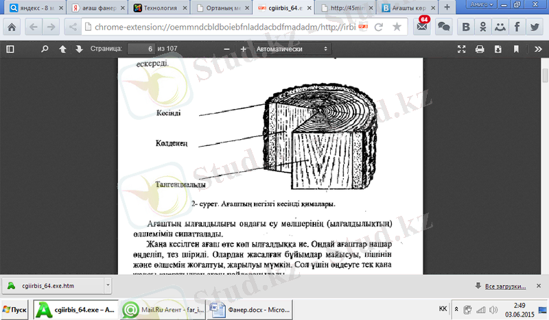 Мақсаты: Ағаштың құрылымымен танысу, кеңінен таралған ағаш тұкымдарын (породаларын), ағаштың каттылығйн, тығыздығын беріктігін, кеңінен таралған табиғи акауларды аныктау.
