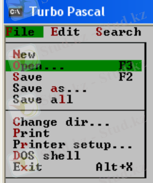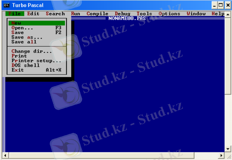 2-сурет. TurboPascal бағдарламалау ортасында жаңа терезе ашу.