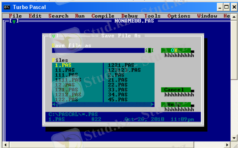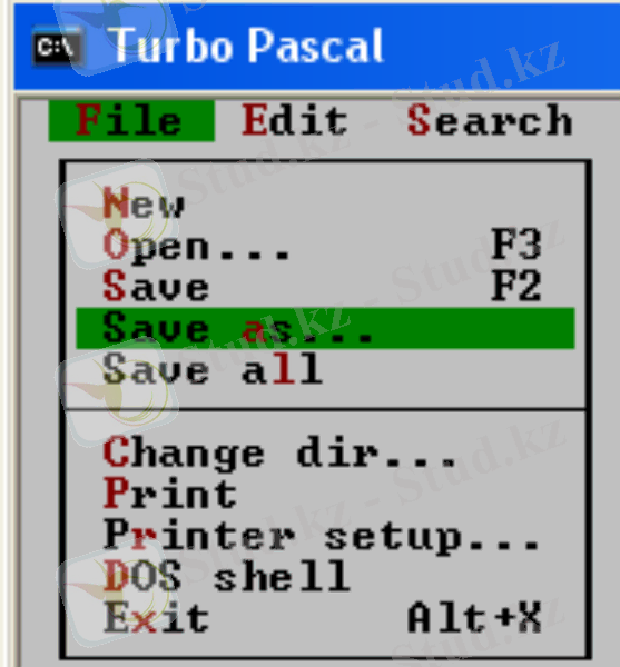 5-сурет. TurboPascal бағдарламалау ортасында бағдарламаны сақтау.