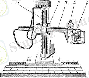 1 - стойка; 2 - каретка; 3 - штанга; 4 - пісіргіш автомат; 5 - пісіруші орні