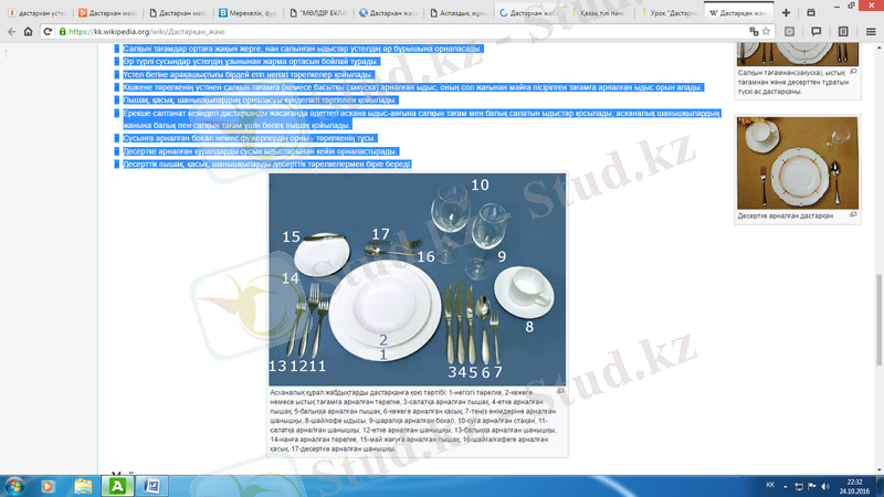 1. Дастархан жабдықтау этикасы