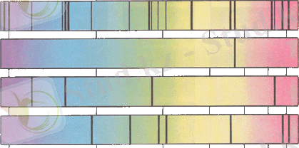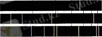 Осы кезге дейiнгi қарастырғанымыз жарықтың шығару спектрлерi (7. 3 - сурет) . Жарықты атомдар тек белгiлi жиiлiкте шығарып қана қоймайды, сонымен қатар осындай жиiлiктерде жұтады да. Мысалы ақ жарықты температурасы төмен, өзiнен жарық шығарып тұрмаған газ арқылы жiберетiн болсақ, жарықтың үздiксiз спектрiнiң бетiнде қара сызықтар пайда болады. Бұл жұтылу спектрлерi (7. 4 - сурет) .