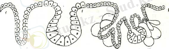 А - жай түтікше без, Б - жай альвеолалык без, В - күрделі түтікше альвеолалық без, Г - эпителий.