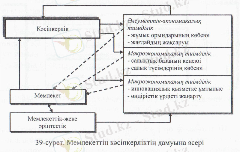 Кәсіпкерлік қызметті қолдаудың тиімді шешімдерінің бірі мемлекеттің, аймақтың және жергілікті жердің өзін-өзі билеу органдарының кәсіпкерлік инфрақұрылымын құруға және дамытуға белсене араласуы болып табылады. Өз кезегінде бұл үрдіс жергілікті, аймақтық және ұлттық экономиканың тиімділігін арттыруға әсер етеді (39-сурет) .
