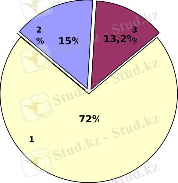 Мұндағы 1 - Жаңадан енгізілген немесе маңызды технологиялық өзгерістерге ұшыраған өнімдер - 15, 6%; 2 - Жетілдірілген өнімдер - 72, 2%; 3 - Басқа да өнімдер - 13, 2%.