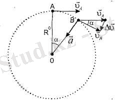 А және В нүктелердегі жылдамдық векторлары арасындағы бұрыш А және В нүктелерді шеңбердің центрімен қосатын радиустар арасындағы