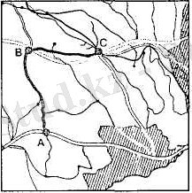 Мысалы, тұрақты v жылдамдықпен қозғалған автомобиль тандап алған ABC маршрутпен t уақыт жүргенде, қай жерге жететінін картаны пайдаланып анықтауға болады (2. 4-сурет) .