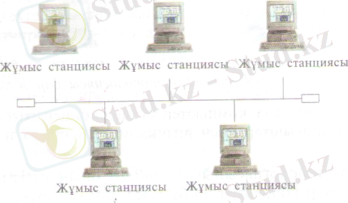 «Шина» топологиясы бір жеткізетін каналды, әдетте «шина» деп аталатын коаксиалды кабельді пайдаланады. Барлық желілік компьютерлер «шинаға» тікелей қосылады. Мұндай желінің үлгісі 8-суретте бейнеленген.