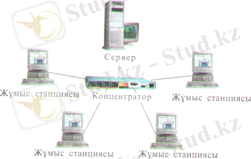 Мұндай жүйе қарапайым және тиімді, деректер пакеттері өр компьютерден концентраторға бағытталады. Концентратор өз кезегінде пакеттерді тиісті жеріне жеткізеді. Мұндай топологияның