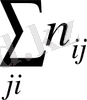 n yi арқылы y j бағанасы бойынша алынған сандар қосындысы көрсететін жиілік белгіленген, яғни n yj == n 1j + n 2j + … +n kj. Барлық n 1j сандарды алдымен n xi бағанасы бойынша, одан соң n yf жолы бойынша қосып, немесе алдымен n yj жолы, одан соң n yi бағаналы бойынша қосып, немесе клеткадағы барлық n ij мәндерін (i=1, k, j=1, i) қосу арқылы n мәнін аламыз, яғни n 1j