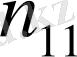 Қос индексті n ij символы (мұны кейде n xy деп те жазады) X пен Y мәндері бірдей бірнеше рет қайталанып кездескенін көрсететін жиілік саны. Мысалы, n 14 =5 десек, мұны x 1 жолы мен y 4 бағанасының қиылысуында x 1 пен y 4 мәндерінің әрқайсысы 5 реттен қайталанып кездесті деп ұғамыз. n xi арқылы x i жолы бойынша алынған сандар қосындысын көрсетілген жиілік белгіленген, яғни