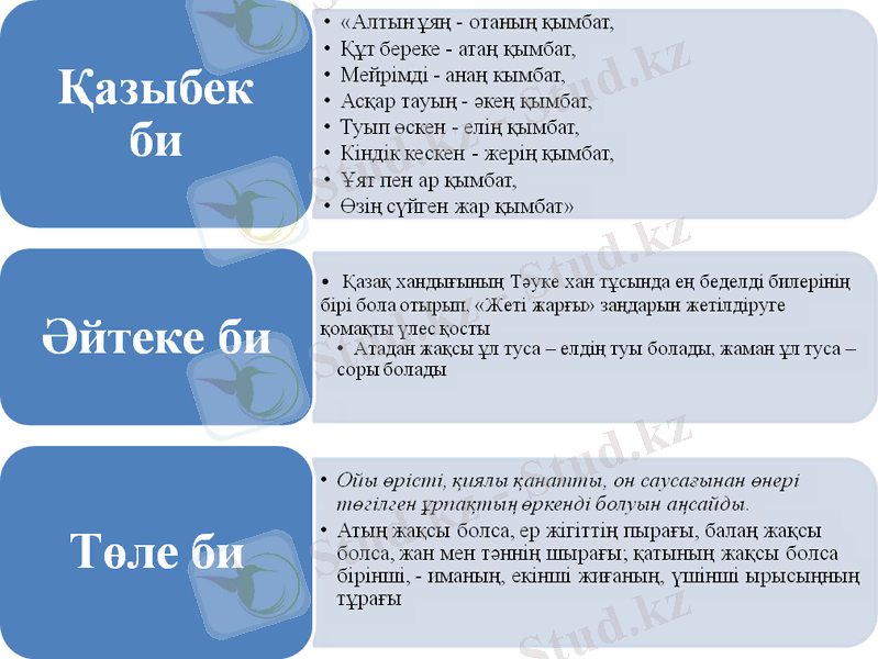 - қазақ халқының ғұлама-ғалымдары, би-шешендері және ағартушы-педагогтары мен ғалымпедагогтарының еңбектері, көпбалалы отбасының қазақ этнопедагогикасы негізінде тәрбиенің ғылымитеориялық негіздері;