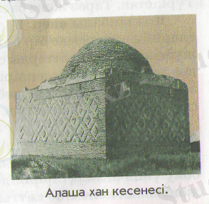 Алаша хан кесенесі. ХIV-ХV ғасырлар арасындағы сәулет өнерінің басты бір ескерткіші. Күмбез Ұлытау ауданындағы Қаракеңгір өзенінің жағасына салынған. Бұл кесененің өзіндік бір ерекшелігі - далалық сәулет өнерінің үлгісінде жасалуы. Оның іргесі текшеленіп қаланып, төбесі күмбезделген. Кіре беріс маңдай алды киіз үйдің қос қанатты сықырлауық есігі тәрізді. Күмбездің екі жақтауы мен маңдайшасы өрнекті кірпіштермен қос сызықша етіп қатар өрілген. Қабырғалары сыртқы жағынан кереге көзді кілем тәрізді өрнектеліп каланған. Кесененің кұрылыс жүйесіндегі өрнек үлгілері Орта Азияның сәулет өнерінде кездеспейді.