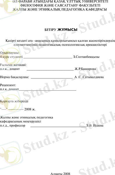 ҚАЗІРГІ КЕЗДЕГІ АТА-АНАСЫНЫҢ ҚАМҚОРЛЫҒЫНСЫЗ ҚАЛҒАН ЖАСӨСПІРІМДЕРДІҢ ӘЛЕУМЕТТЕНУНІҢ ПЕДАГОГИКАЛЫҚ -ПСИХОЛОГИЯЛЫҚ ЕРЕКШЕЛІКТЕРІ
