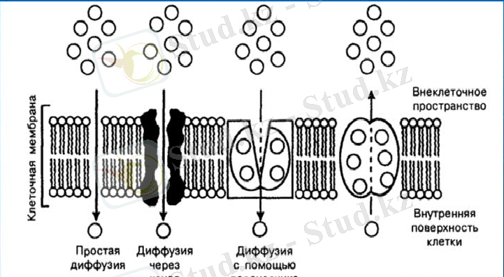 Жай диффузия - өздігінен, ешбір көмексіз, затгардың концентрация градиенті (жоғары концентрациядан төменгі концентрация) бағытында мембрана арқылы өтуі.