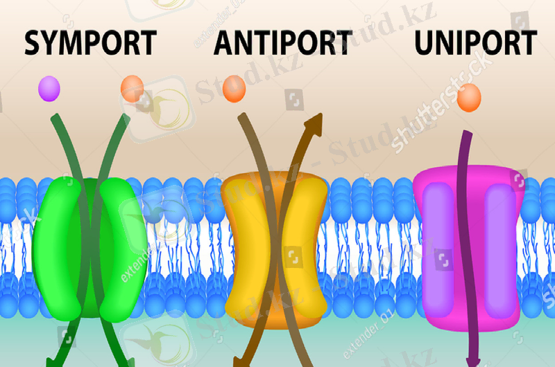 - 1) Na+, K+-сорғышы немесе Na+, K+-тәуелді АТФ -аза-2а-ширатпадан, 2в-құрылымынан тұратын интегралдық ақуыз. Ол АТФ энергиясын пайдаланып Na+және K+иондарын олардың концентрация градиентіне қарсы бағытта өткізеді, яғни Na+ионын-жасушадан сыртқа, ал K+ионын-жасуша ішіне.
