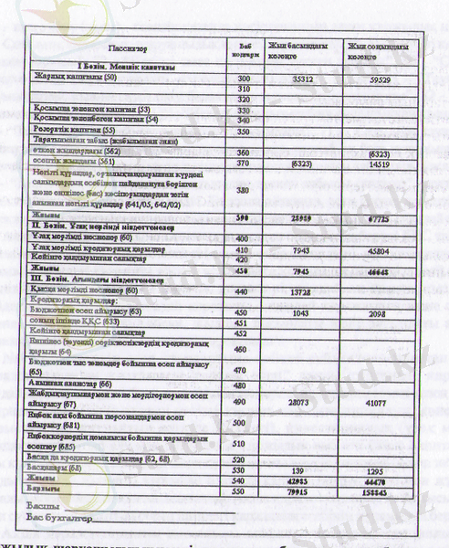 Сонымен, қаржылық-шаруашылық қызметішң нәтижелері: