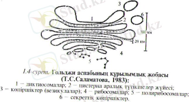 Камило Гольджи (1899) ашқан клетканың бұл органоиды дик-тиосома, везикула (кѳпіршік, бүртік) және цистерна (диктиосома) аралық түтікшелер сияқты құрылымдардын жиынтыгы екендігі анықталды (1. 4-сурет) .