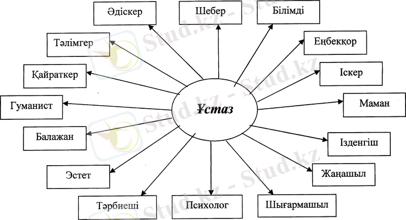 Ұстаз. Ұстаздық - киелі әрі өте қиын мамандық. Адамзатты ежелден ойландырып, толғандырып келе жатқан, қоғамдық құрылыс өзгеріп жатса да қажеттігін жоймайтын маңызды мәселе - жас ұрпақты өмір сүруге дайындау. Бұл қиынның қиыны. Себебі әр адам - қайталанбас жеке тұлға. Әр адамның жан дүниесі өзінше бір әлем. Уақыт озған сайын, қоғамдағы саяси-әлеуметтік қарым-қатынас дамыған сайын, бүкіл дүние жүзінде мемлекетаралық интеграция күшейген сайын ұстаздың қызметі қиындай түсетіні анық.