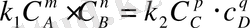 Реакция жылдамдығы әрекеттесуші заттардың стехиометриялық коэффициенттерінің дәрежесіне келтірілген осы заттар концентрацияларының туындысына пропорционалды. Реакция теңдеуін мына түрде жазамыз: