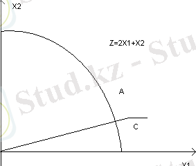 Координат өсінде жүйедегі теңсіздіктердің графиктерін тұрғызайқ. Берілген есептің шешімі мүмкін бола алатын аймақ ОАВС көпбұрышы (1-сурет) . Осы аймақтан Функция максималды мәнге жететін нүктені анықтаиды. Ол үшін деңгеи сызықты