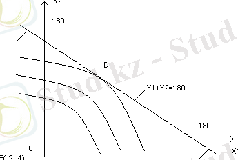 Енді D-нүктесінің координаттарын табу үшін, шеңбердің осы нүктеде бұрыштық коэффицентімен және Х 1 +Х 2 =180 сызығының бұрыштық коэффиценті дәл келетінін ескеріп, мынадай есептеулер жүргіземіз.