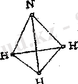 NH 3 молекуласының құрылысы бұрынырақ қарастырылған. (3. 4-сурет қара) . Оның пішіні пирамида тәрізді. Химиялық байланыс N-H полюсті оң заряд сутегі атомдарында, теріс-азот атомында топтасқан. Осының нәтижесінде аммиак молекулаларының арасында сутектік байланыс түзіледі, оны мына түрде бейнелеуге болады: