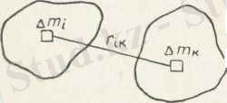 ара кашықтығы-мен салыстырғанда кішкене болса ғана дүрыс болады. Егер денелердің өлшемдері олар-дың ара қашықтығымен шамалас болса, онда денелердің әрқайсысын кішкене элементтерге бөлген жен (68-сурет), солай еткенде әрбір екі элемент үшін Ньютонның тартылыс заңы дүрыс болады, сон-да бірінші дененің Мнші элементі мен екінші дененің