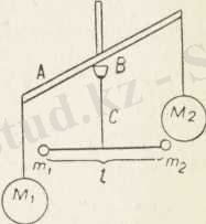 Тартылыс тұрақтысьшың мәнін ең алғаш 1798 жылы Қэвен-диш иірілмелі таразының жәрдемімен тапқан. Кэвендиш пай-даланған прибордың схемасын 69-суретте көрсетілген. Горизонталь күйентеге (А) әр-қайсысының массасы 158 кг М\ және М 2 қорғасын шарлар ілінген. Құйентенің астьь нан жылжымайтын В бүркеншігіне жіңішке С сымының бір ұшы байланған, оның екінші ұшына жеңіл / стержені асылған, ол стер-женьнің ұштарына кішілеу Ш\ және т 2 қор-ғасын шарлар орнатылған; Кэвендиш тәжі-рибесінде бүл шарлардың әрқайсысының массасы 730 г болған. А күйентесін бүрған-да үлкен шарлар кішкене шарларға жақын-дап, оларды ездеріне тартады; ол тартылыс- 69 ' с УР? т -Л эвен Д иш тәжі-ты ті мен ш 2 шарлары орнатылған / стерже- Р иОесшін схемасы -ні бұрылуынан байқауға болады. С сымы-ның серпімділік қасиеттерін біле отырып, тартылыс күшін өлшеу-ге болады, одан соң һ тартылыс түрақтысының мәнін табады. Кейін Кэвендиш тәжірибесі бірнеше рет қайталанған. /г-ның осЫ: кездегі қабылданған мәні мьшадай: