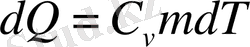 жұмыс насы тең болады. Бұл кезде термодинамиканың бірінші заңы (5) формуламен анықталады. Бұл кезде термодинамиканың бірінші заңы денеге берілген жылу түгелімен оның ішкі энергиясын өзгеруге кетеді, олай болса (8) формула бұл кезде мынаған тең болады: