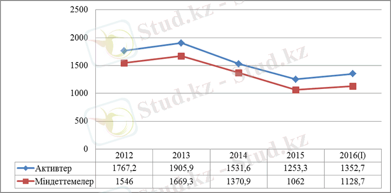 2016 жылдың алғашқы жартыжылдығы үшін банктердің активтері мен міндеттемелері . (млрд. АҚШ доллары)