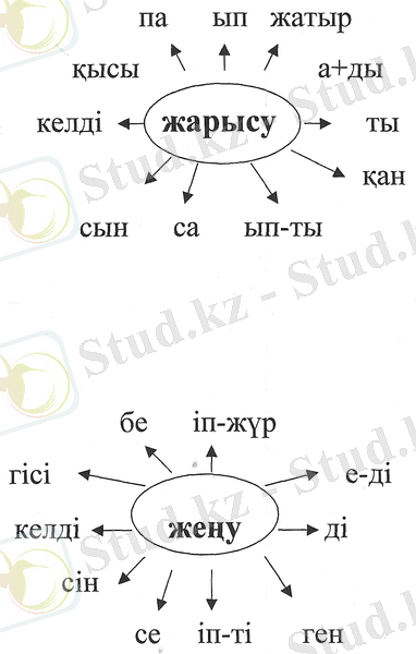 Олар: « Қазақша күрес », « Бәйге » ойындары. Осы ойын арқылы етістіктің жүрнақтарын грамматикалық тапсырмада пайдалану. Етістік: «жарысу», «жеңу» [15] .