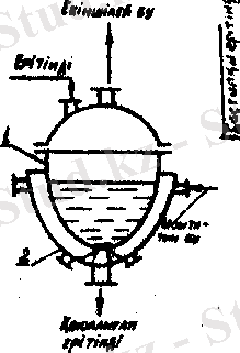 Аппараттың жұмыс істеу принципі. Орталық циркуляциялық құбыры бар үздіксіз жұмыс істейтін буландыру аппаратының жұмыс істеу принципін қарастырамыз (9. 1-сурет) . Аппарат негізінен ысыту камерасы (1) және сепаратордаң (2) құрылады. 9. 1-суретте көрсетілген тәсімде ысыту камерасы және сепаратор бір аппаратта орналасқан. Ысыту камерасы сепаратордан бөлек орналасып, онымен құбыр арқылы жалғасыу да мүмкін.
