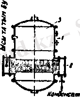 1 - ысытатың камера; 2 - корпус; 3 - бу құбыры; 4 - тамшы ұстағыш; 5 -тамшы ағатың құбырлар; 6 -аппаратты жуу үшін көп тесікті құбыр; 7 - конденсат шығарылатың құбыр.