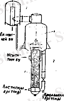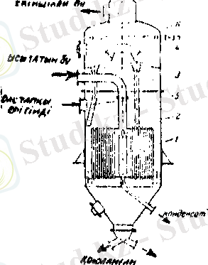 9. 8-сурет. Ысыту камерасы горизонталь болған тік буландыру аппараты: 1- корпус; 2- ысыту камерасы; 3- сепаратор