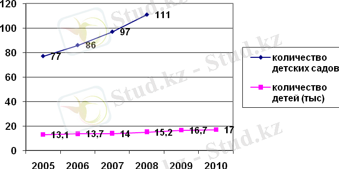 1 сурет. Шығыс Қазақстан облысындағы балабақшалар жүйесі мен құрамының серпіні (2005-2010 ж. ж. )