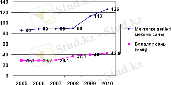2 сурет. Мектептер мен бала бақшалалар топтарындағы балалар санының серпіні (2005-2010 ж. ж. )