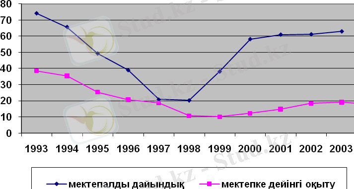 1999 жылы Қазақстанда балалардың міндетті мектепалды дайындығы еңгізілді, бұл балаларды мектепалды дайындық бағдарламасын қамтуға әсер етеді (1 диаграмма) .